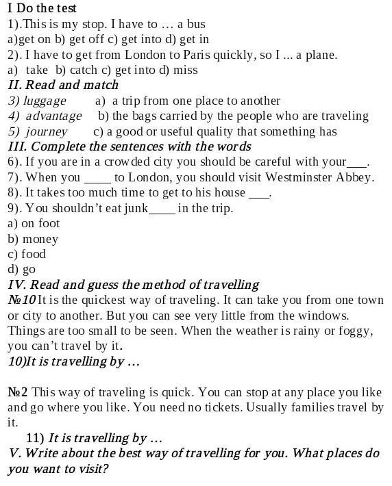 5. The best travelling for me is travelling by car. I can stop at any place I want and go where I like. I don't need to buy tickets. Though the petrol is not cheap.