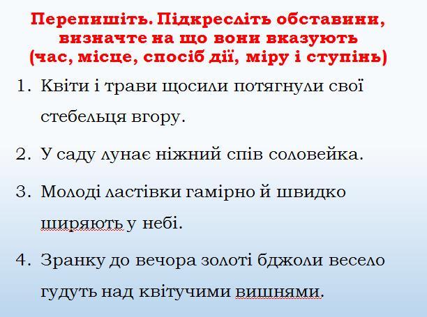 4. зранку до вечора — час, весело — спосіб дії, над вишнями — місце.