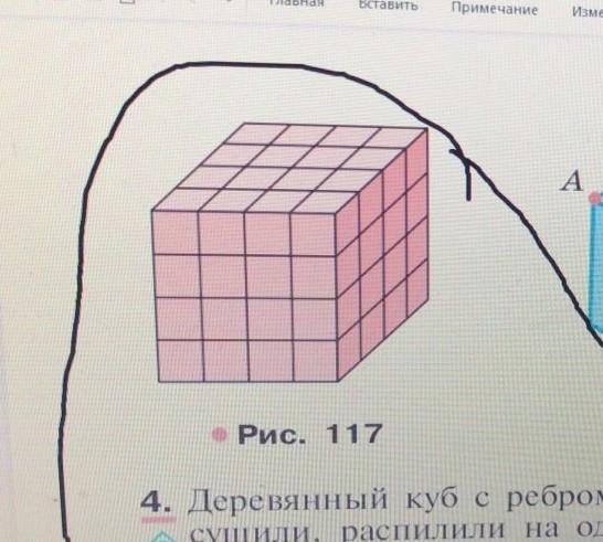 4. Деревянный куб с ребром 4 дм окрасили со всех сторон (рис. 117), высушили, распилили на одинаковые кубики с ребром 1 дм и рассыпали на части. Сколько всего кубиков образовалось? У скольких кубиков окрашены: 3 грани; только 2 грани; только 1 грань?