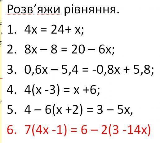 6. 7(4x-1)=6-2(3-14x)