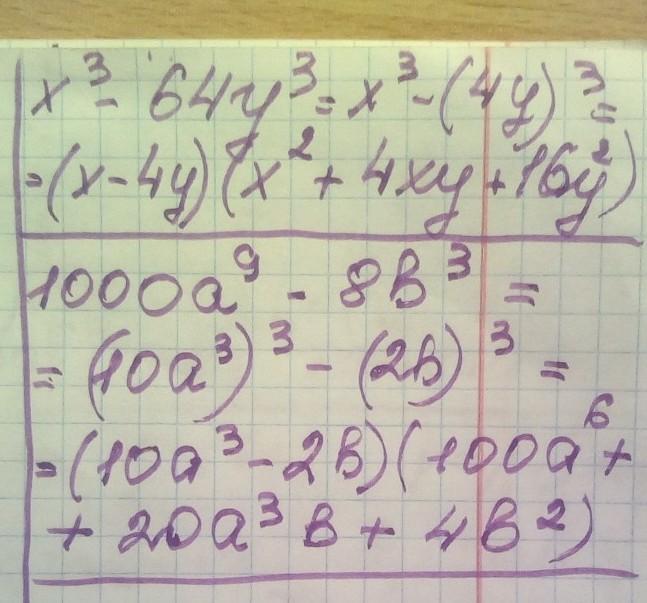 Разложите на множители: а) х3 – 64у3;