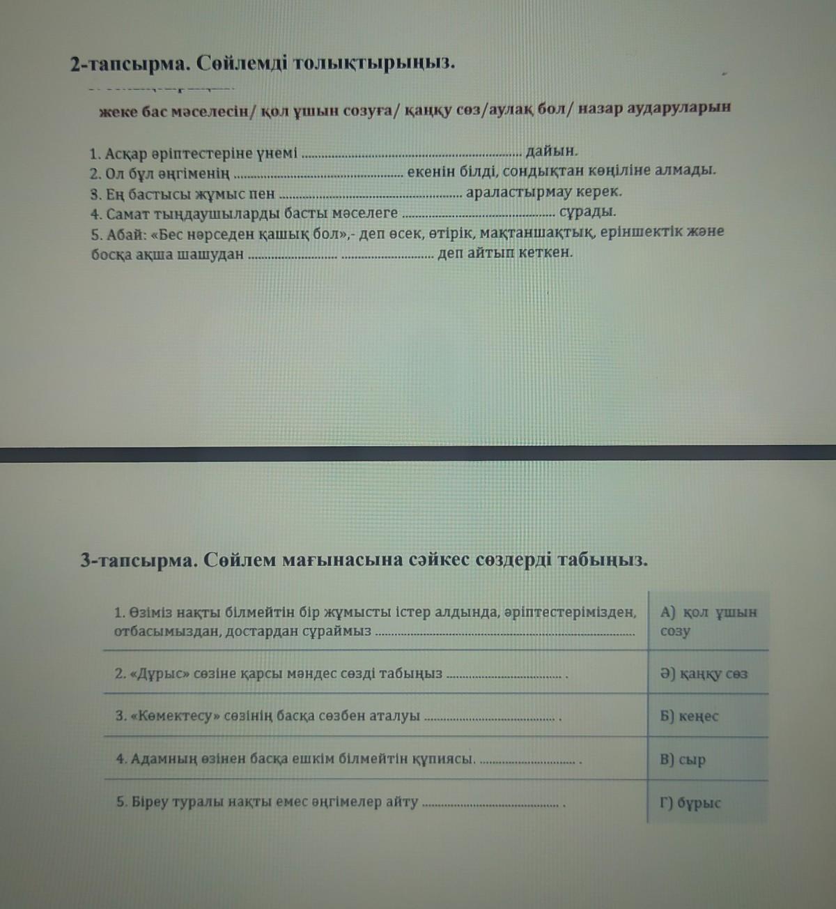 3 - тапсырма Сөйлем мағынасына сәйкес сөздерді табыңыз