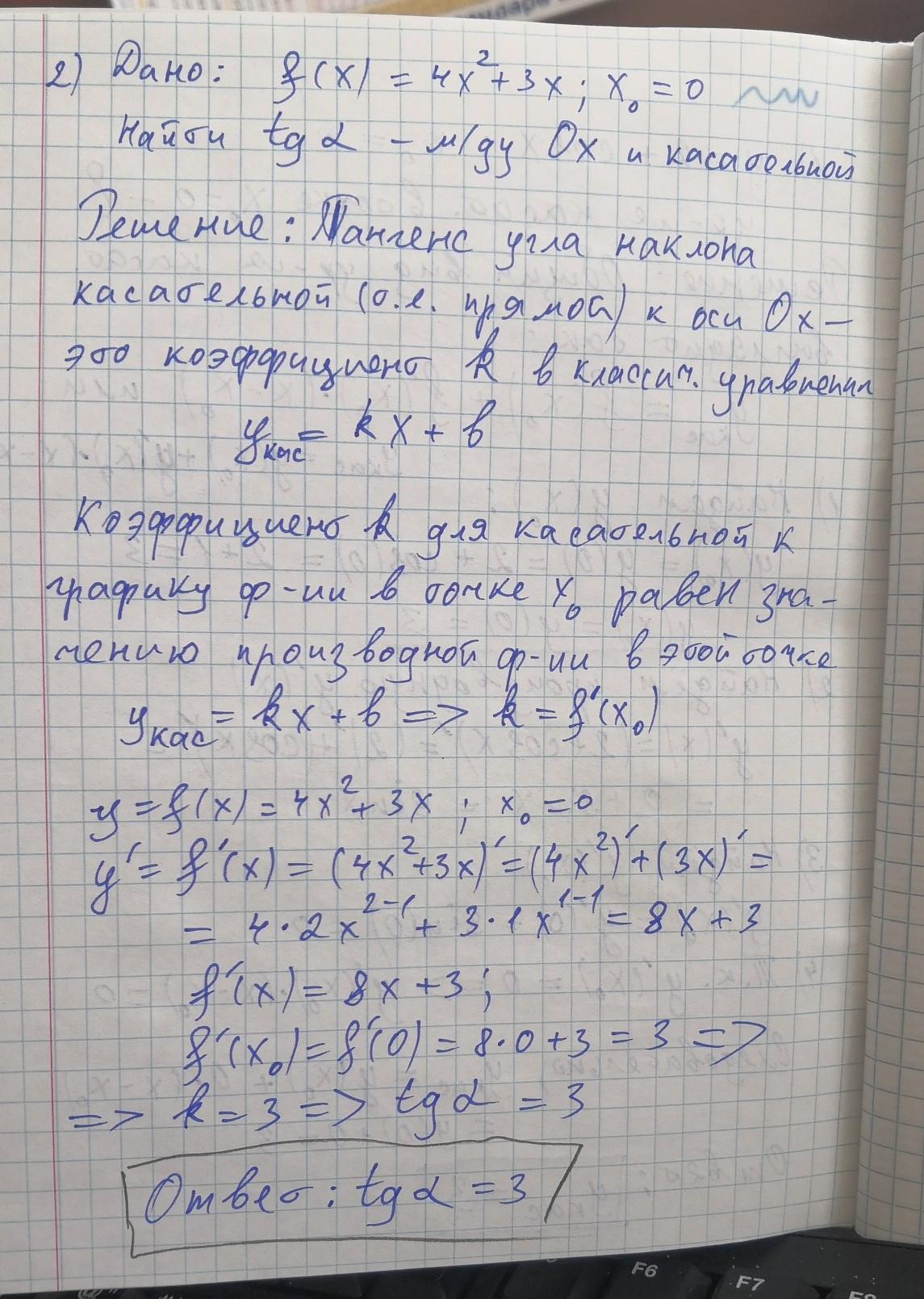 2) Найдите тангенс угла наклона к оси абцисс касательной, проходящей через данную точку