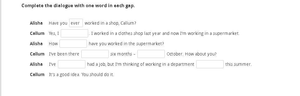 Alisha : I've already had a job , but I'm thinking of working in department for this summer