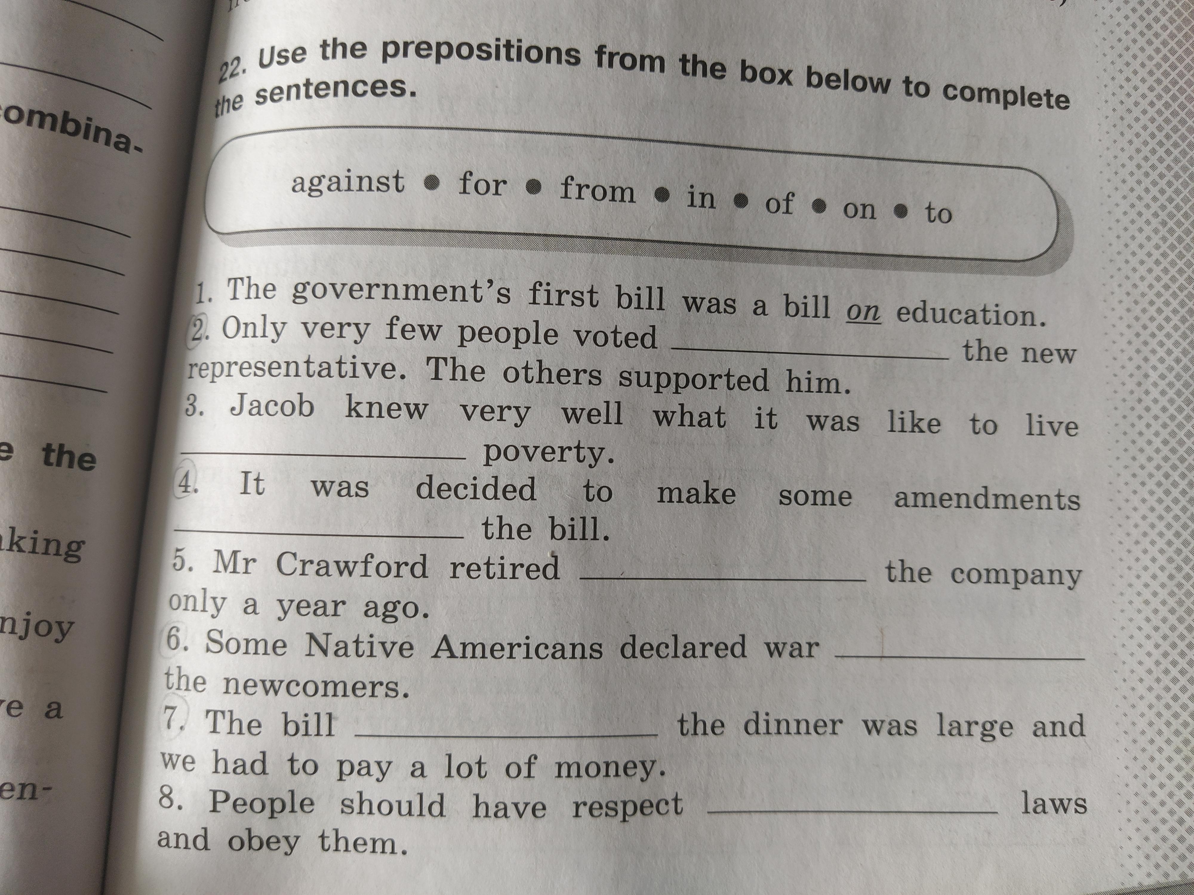 2) against