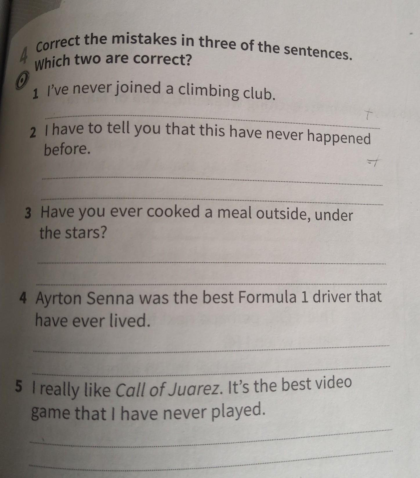 Incorrect sentences: 2 (...this HAS never...), 4 (...that HAD ever...), 5 (...have EVER played...).