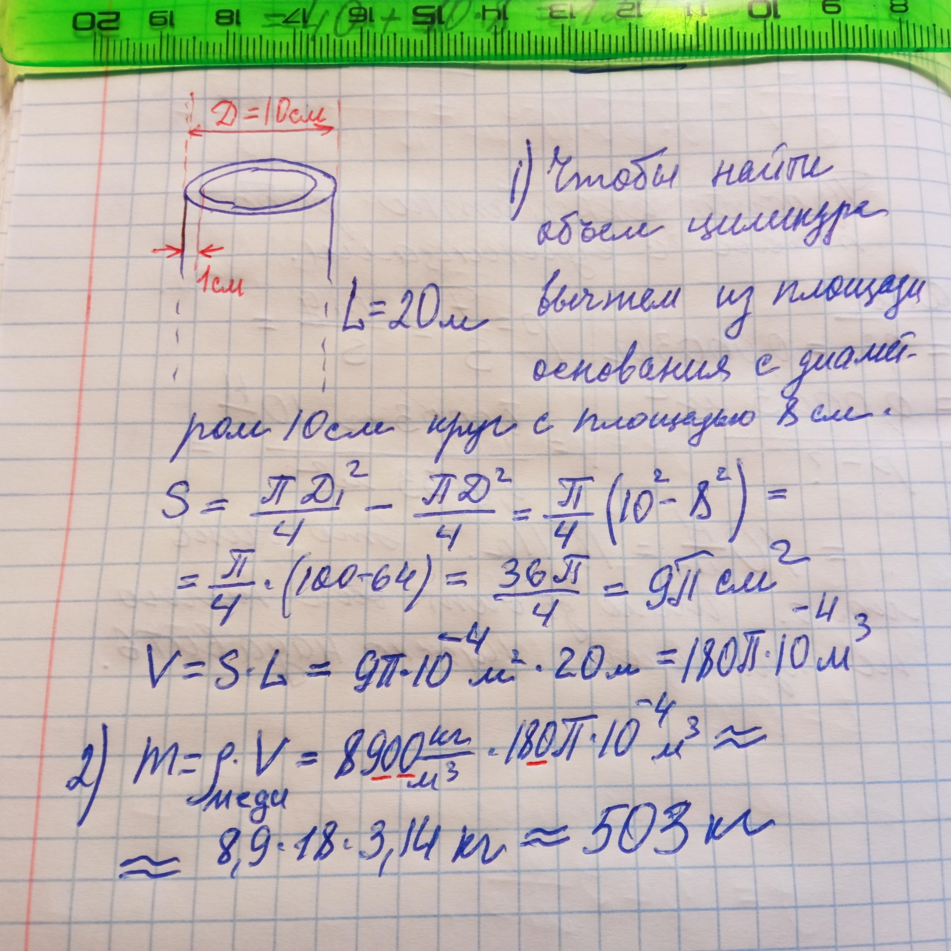 длина медной трубы 2м Внешний диаметр трубы 10 см толщина стенок 1см на какую высоту поднимает подъемник с мощностью 350 ват 7 класс
