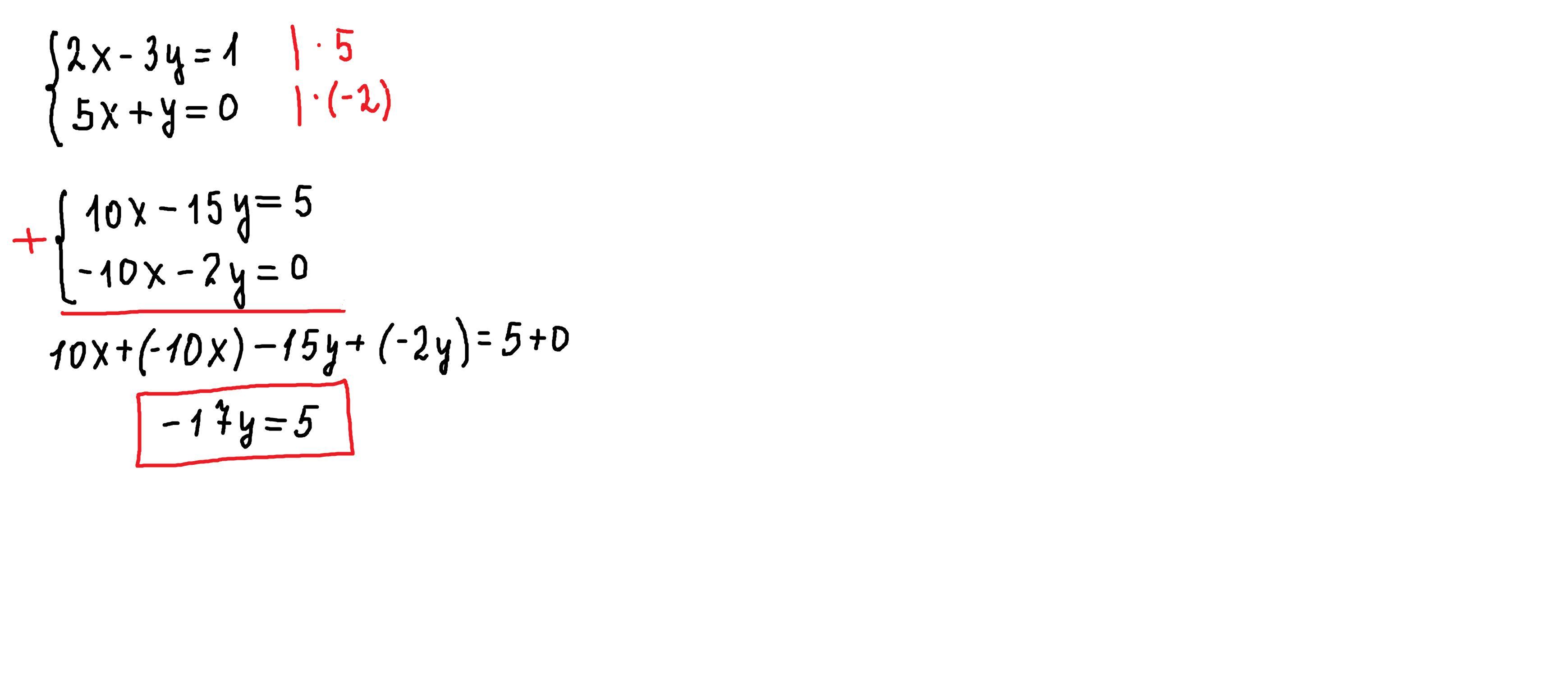 Из условия ясно, что первое уравнение умножали на 5, а второе на -2