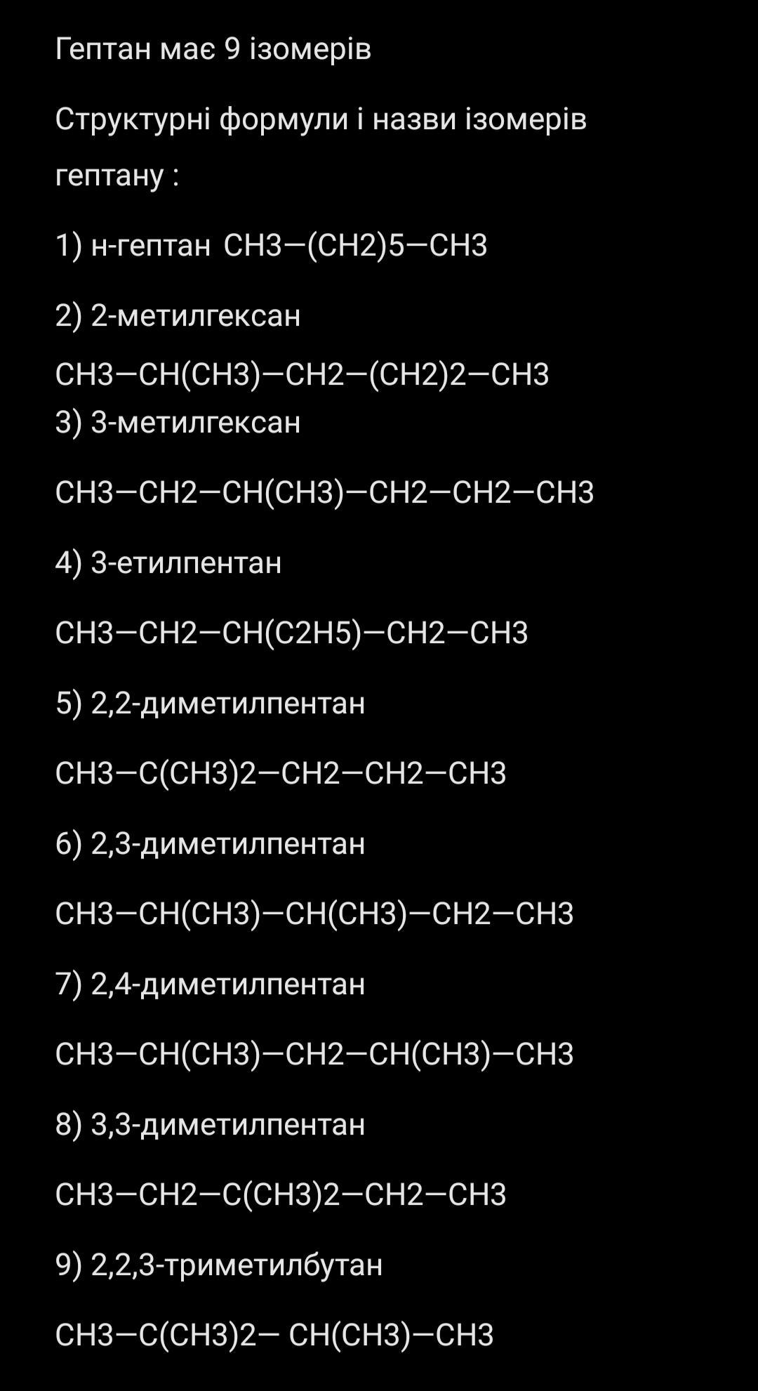 3. Скільки ізомерів має гептан? Складіть структурні
