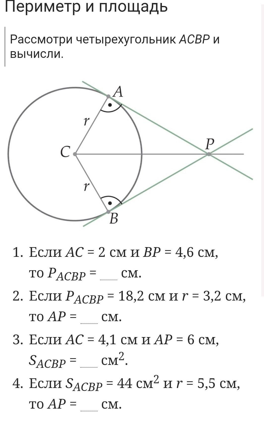 Поэтому AP = BP и периметр четырех угольника можно найти так: