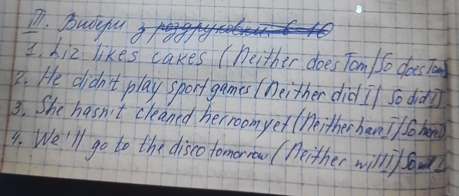 3.She hasn't clened herroomyet (Neitherhan1/Sohen1).