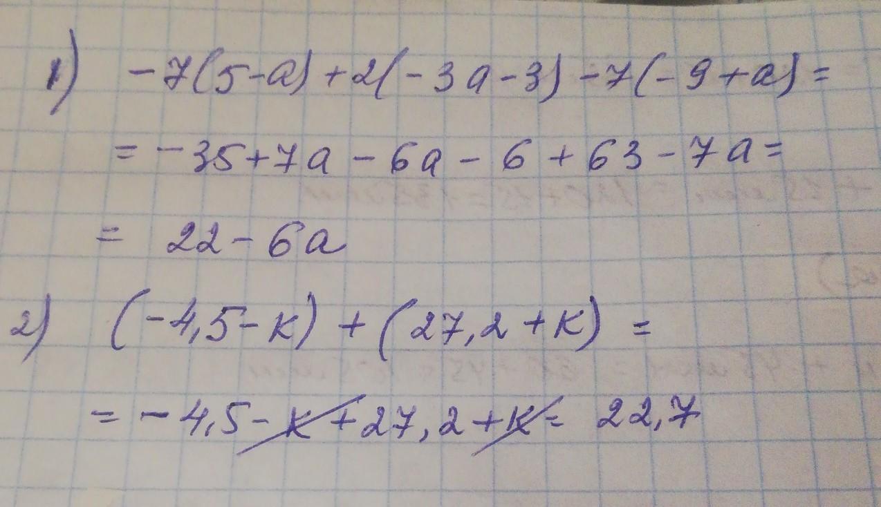 -7(5-а)+2(-3а-3)-7(-9+а)