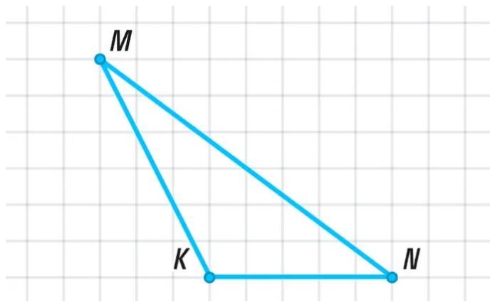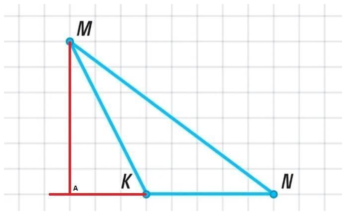 На клетчатой бумаге изображён треугольник KMN. Найди высоту, проведённую из вершины М. Размер клетки равен 1 см 1 см.