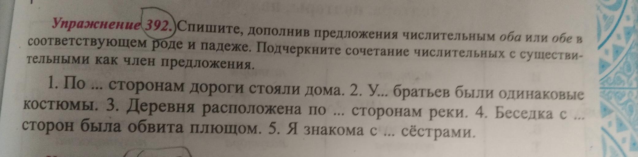упражнение 392 Спишите дополнив предложения числительными оба или обе в соответствующем роде и падеже подчеркните сочетания числительных с существительными как члены предложения. пжжж если правильно то лучший ответ сделаююю