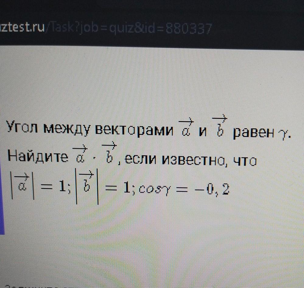 Угол между векторами — угол между направлениями этих векторов (наименьший угол). По определению, угол между двумя векторами находится в промежутке [0°; 180°]. Если векторы перпендикулярны, то угол между ними равен 90º.