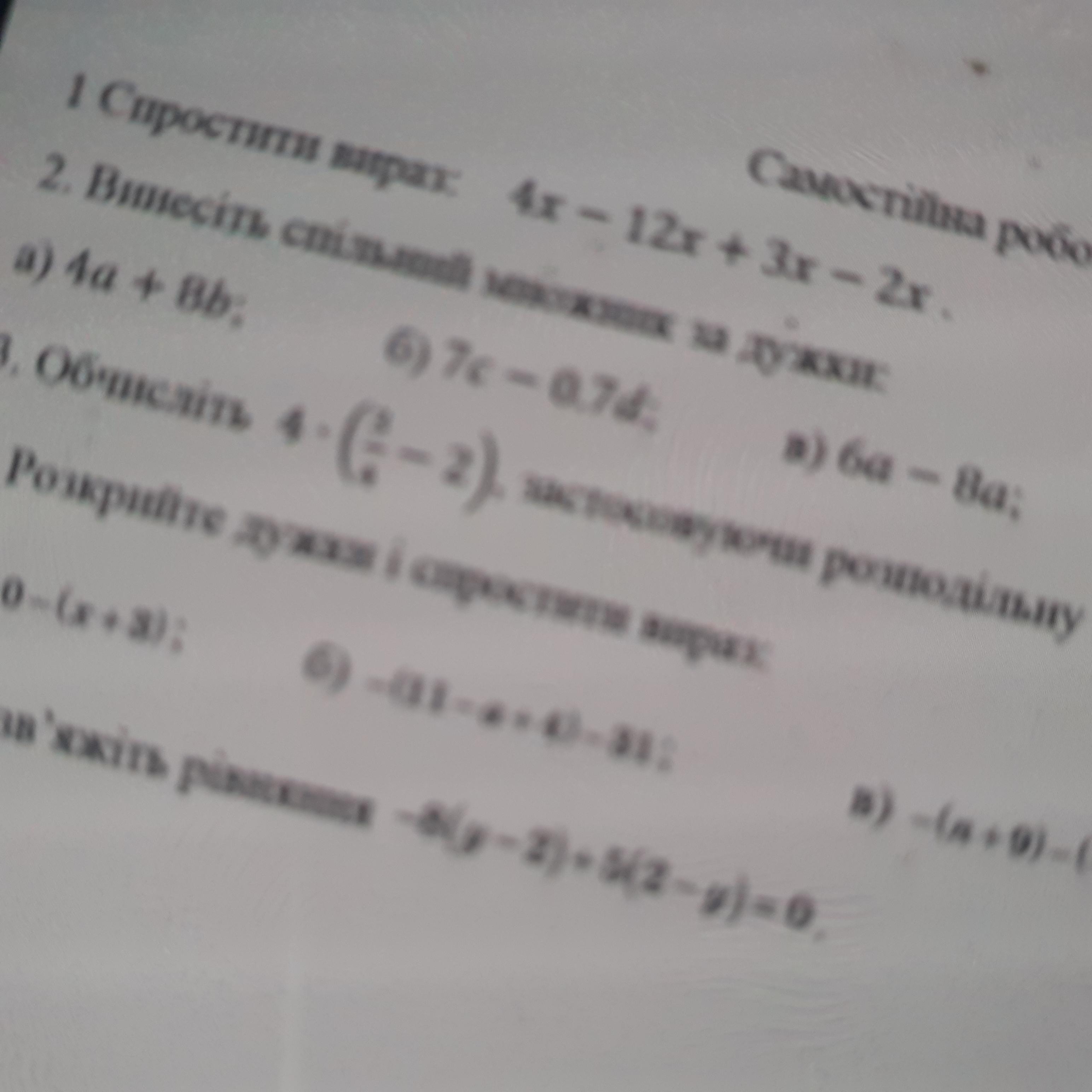 1) 4(a+2b) 2) 0.7(10c-d) 3) 2(3a+4a)