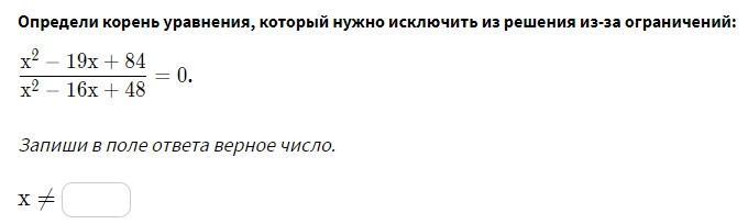 Помогите определить корень уравнения, котрый нужно исключить из ришения из-за органичений