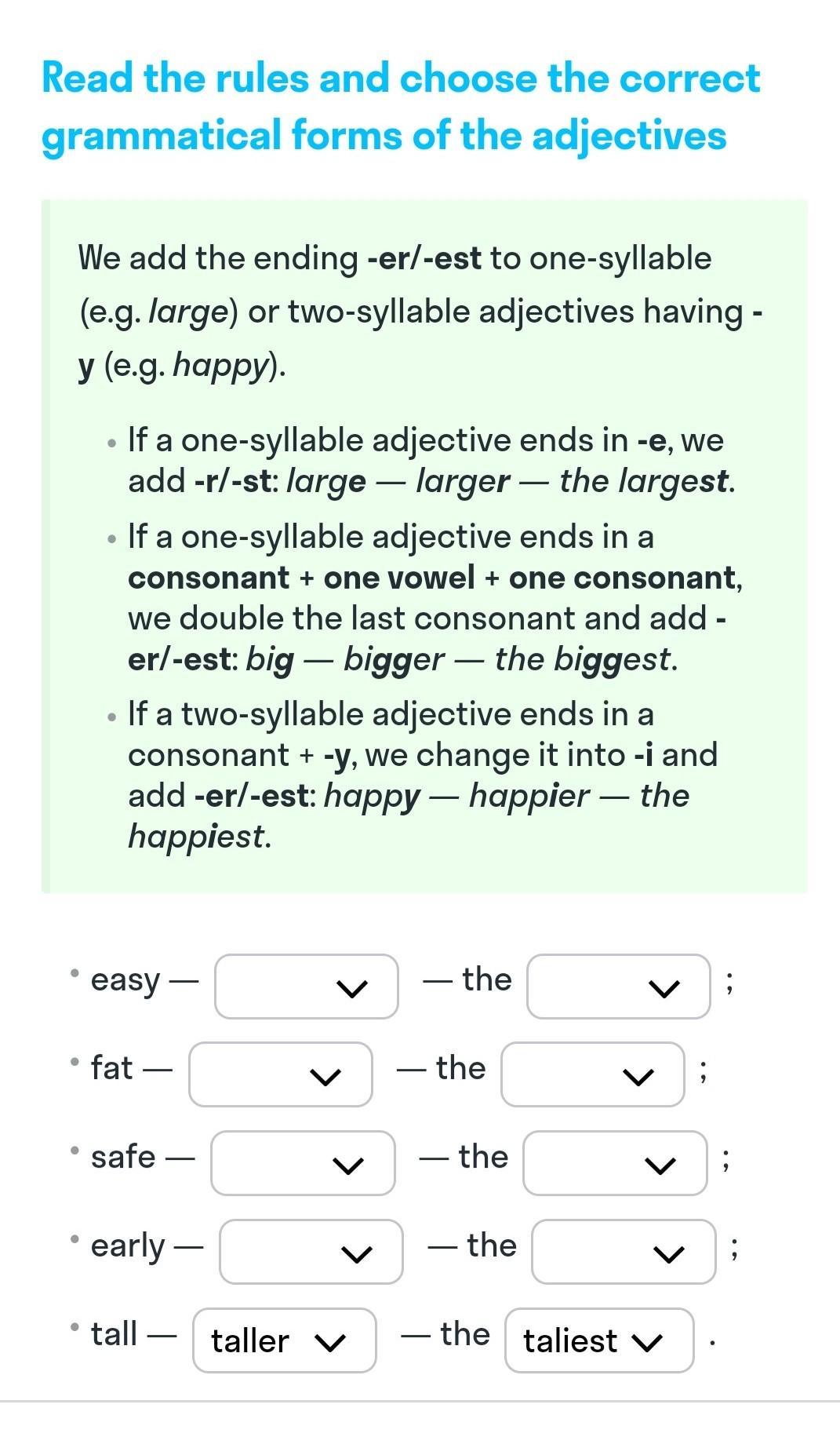 5. Tall- taller, the tallest.
