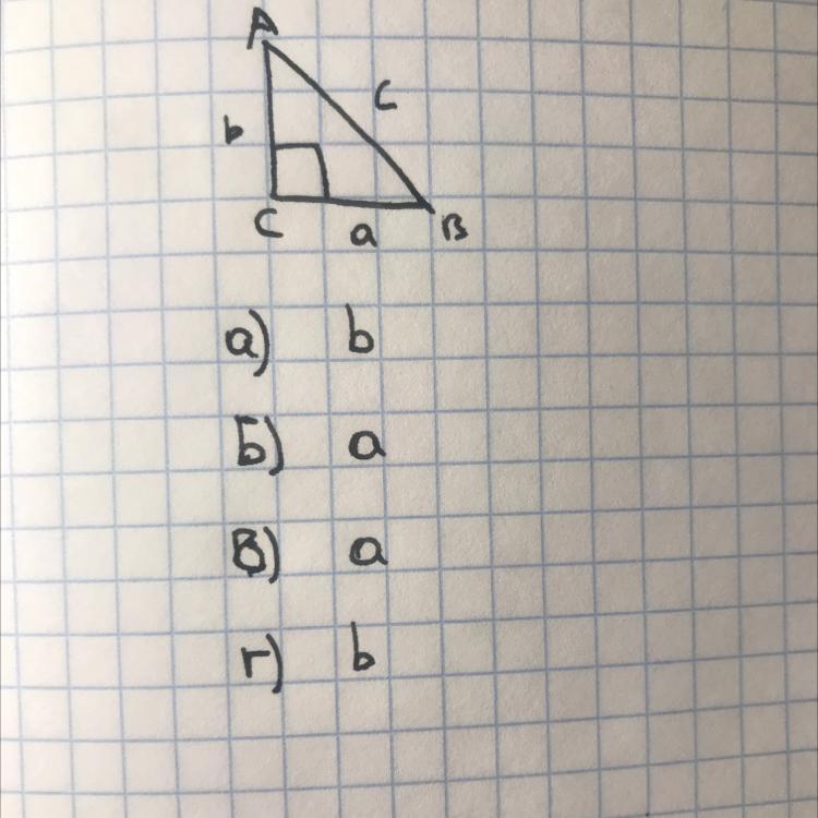 Нарисуйте прямоугольный треугольник с прямым углом С. а) назовите катет, прилежащий к углу А. б) назовите катет, прилежащий к углу В. в) назовите катет, противолежащий углу А. г) назовите катет, противолежащий углу В.