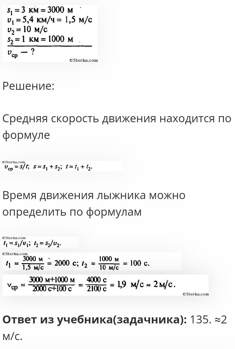 Поднимаясь в гору, лыжник проходит путь, равный 5 км., со средней скоростью 5,4 км/ч. Спускаясь с горы со скоростью 10 м/с., секунду он проходит 2 км. в пути. Определите среднюю скорость движения лыжника на всём пути