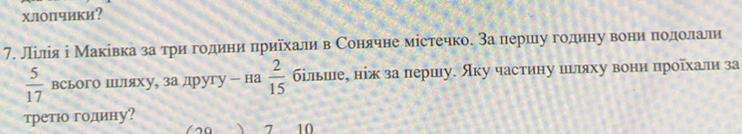 За третью годiну вони прiiхали 1-5/17-(5/17+2/15):