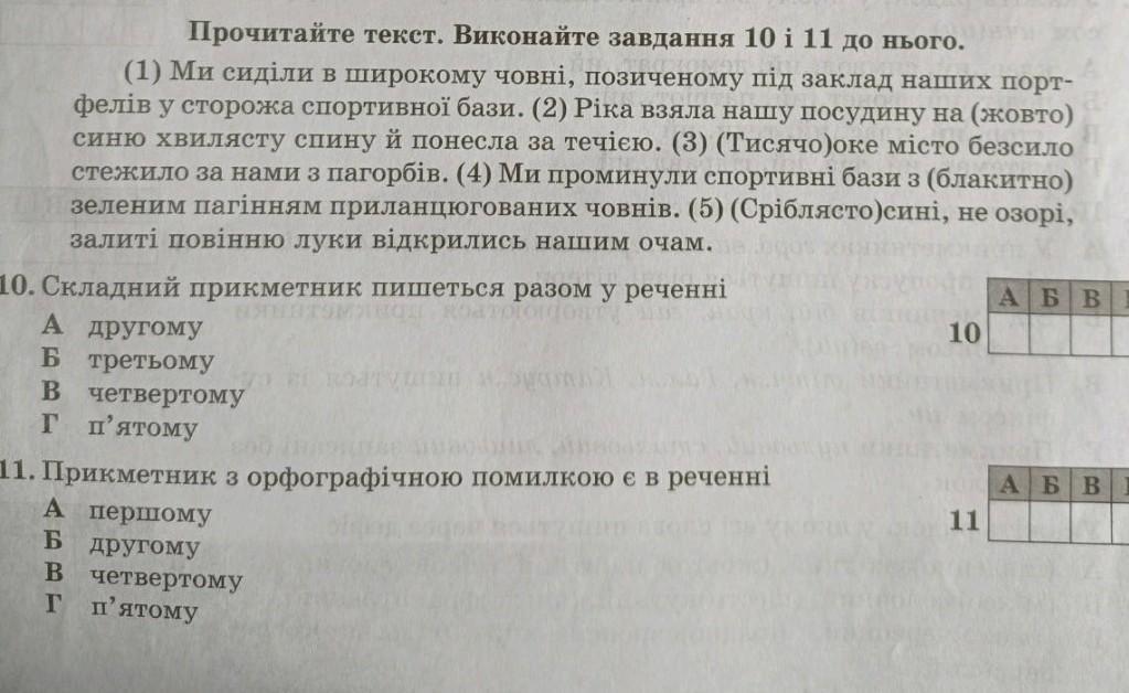 11. Прикметник з орфографічнрю помилкою є в реченні - Г. п'ятому ( неозорі пишеться разом, а в тексті окремо)