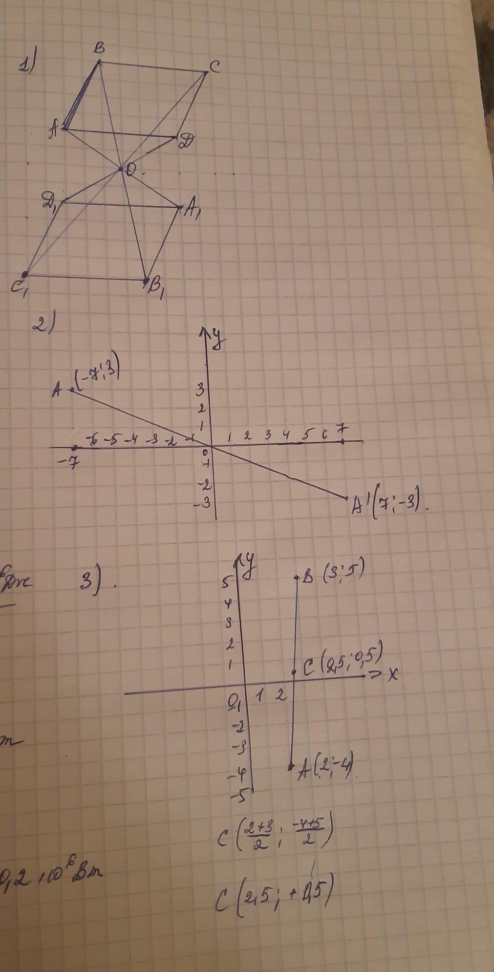 1.Дано паралелограм ABCD і точку O, яка йому не належить Побудуйте паралелограм симетричний даному відносно точки O