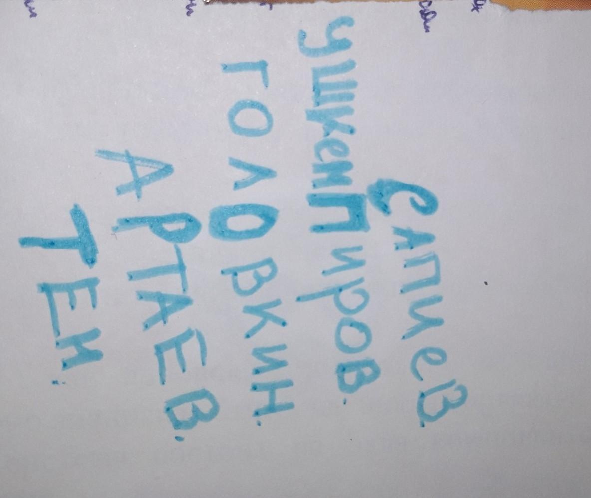 1. Сәпиев; 2.Үшкемпіров; 3.Головкин; 4. Артаев; 5. Тен... я это по переводчику. Но вам будет виднее.
