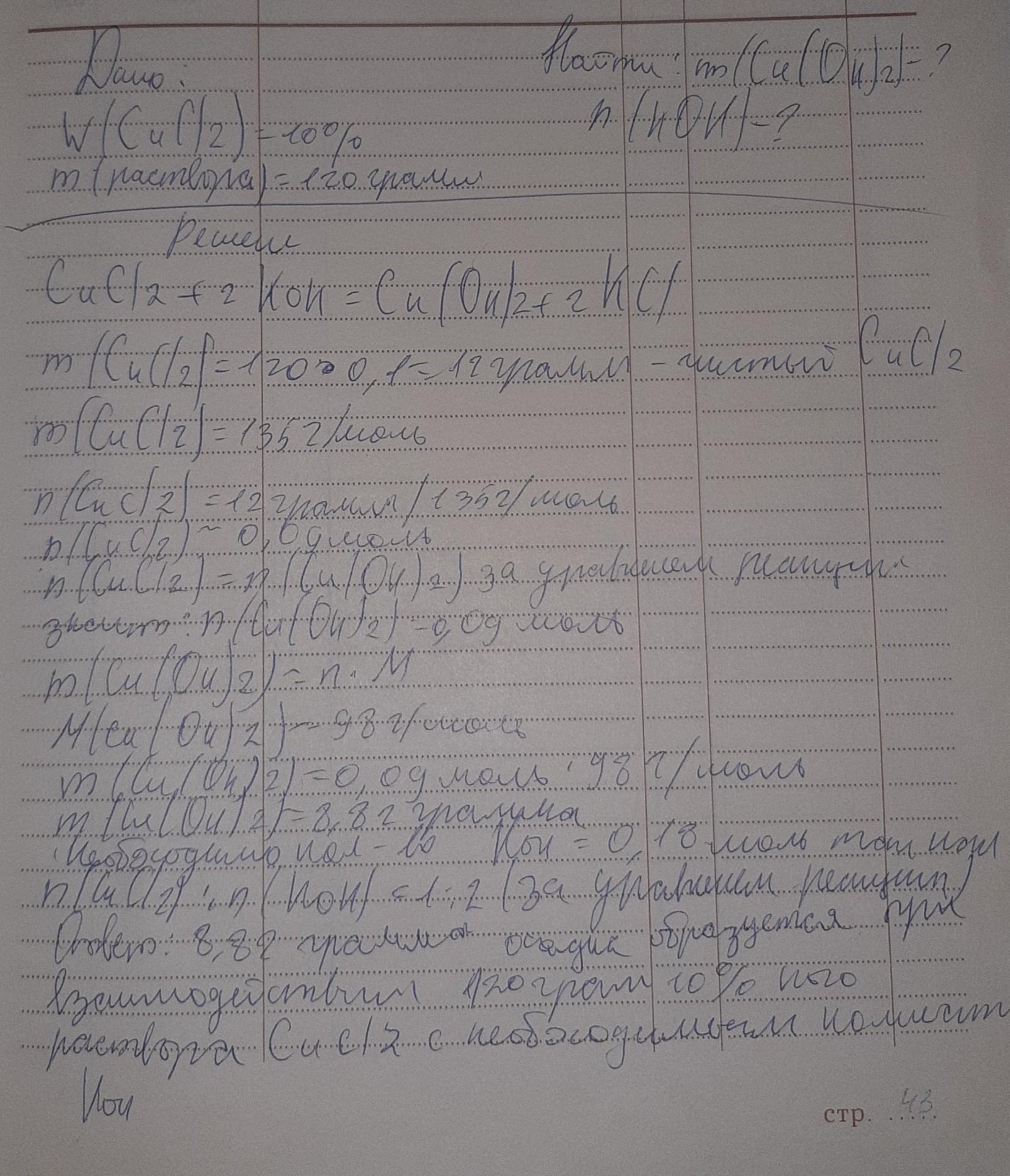 Сколько граммов осадка образуется при взаимодействии 120г.10% – ного раствора хлорида кальция с гидроксидом калия?