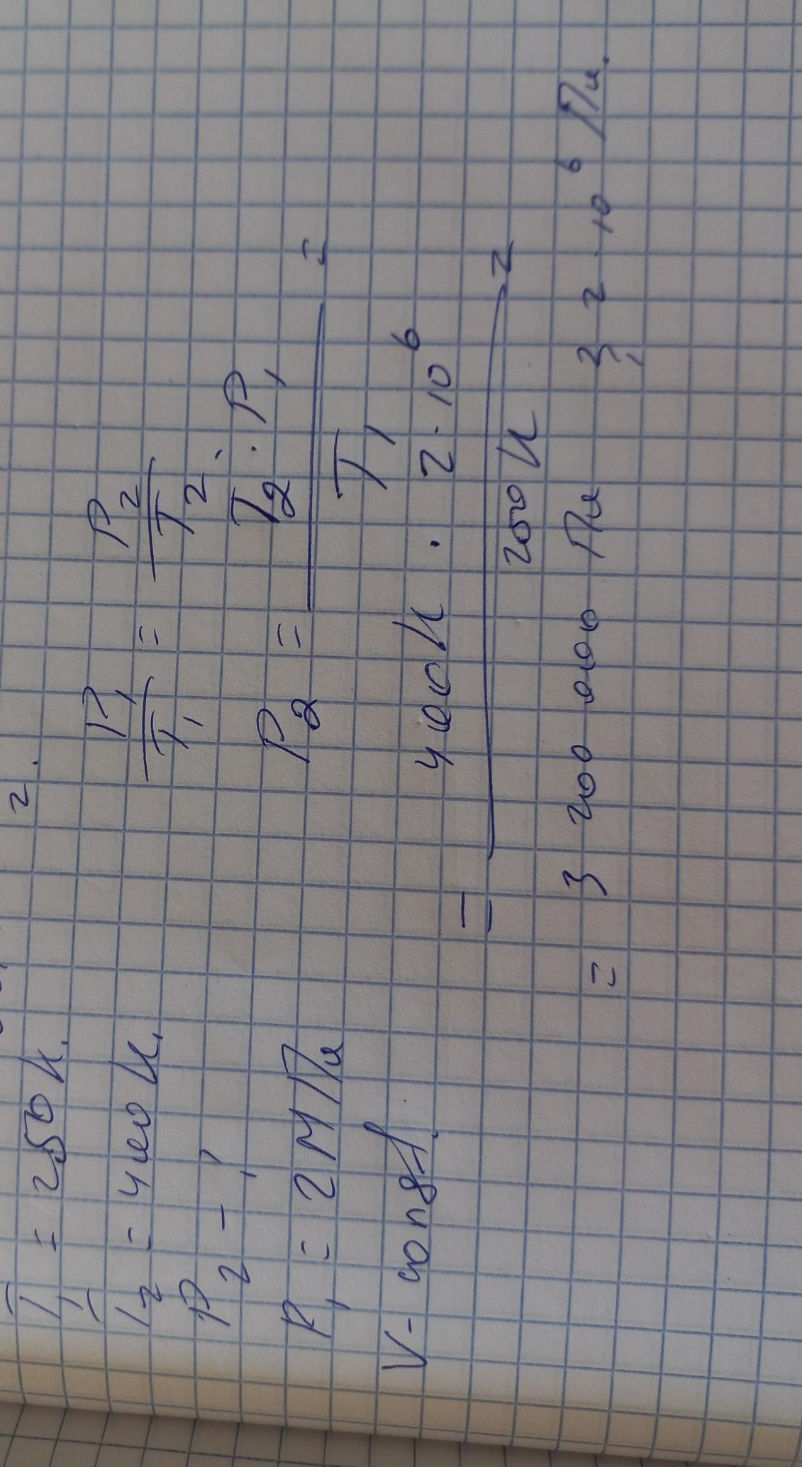 При ізохорному процесі температура змінилась від 250 К до 400 К. Який став тиск, якщо спочатку він був 2 МПа?