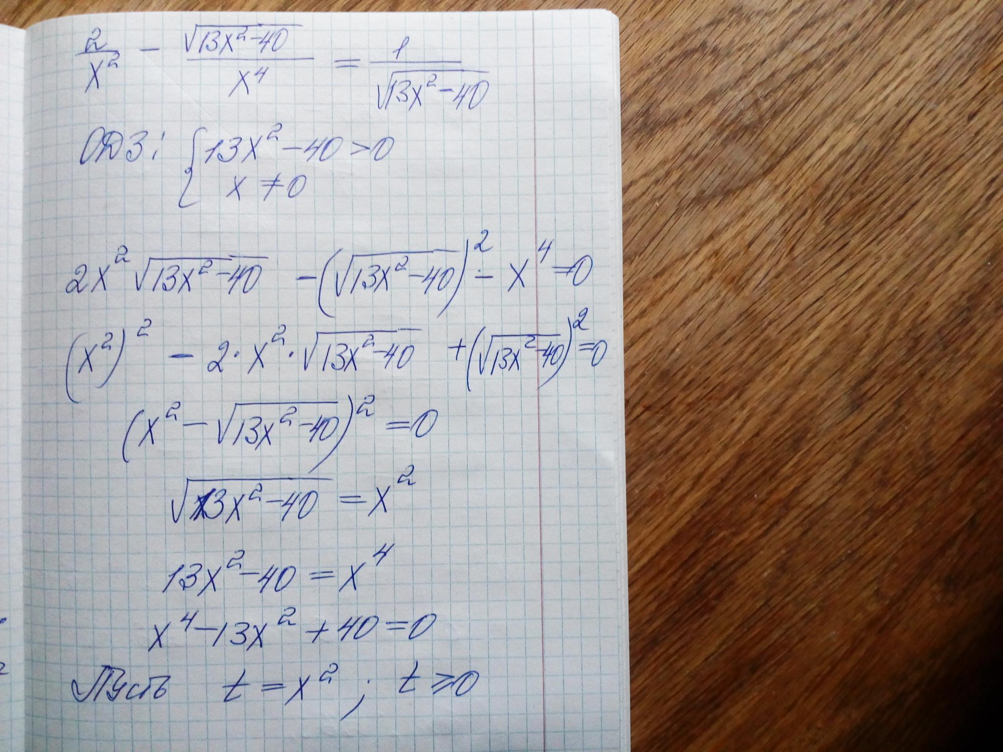 Найдите сумму квадратов корней уравнения 2/x^2 - √13x^2-40(всё под корнем)/x^4 = 1/√13x^2-40(всё под корнем).