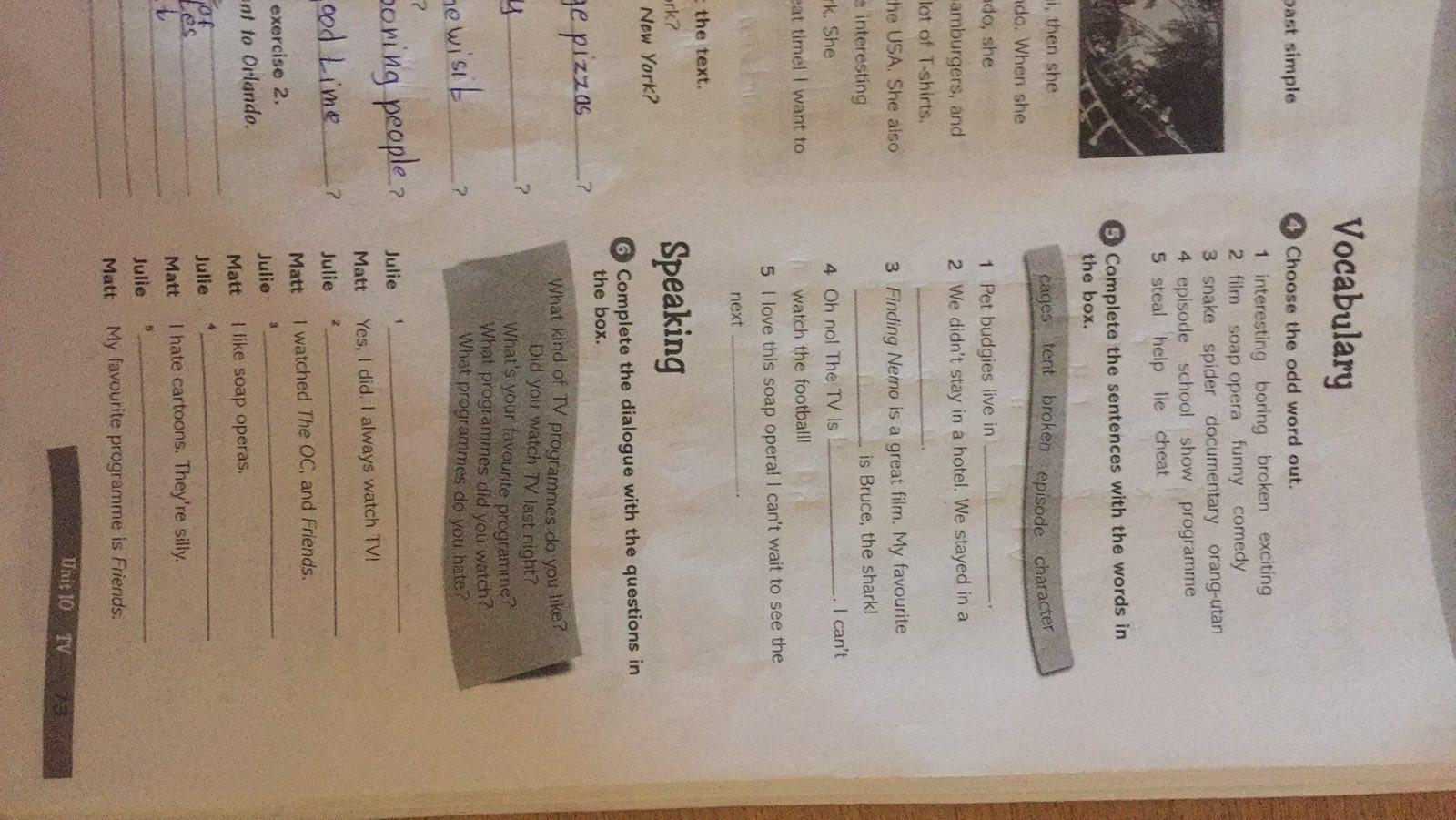 5.1. cages 2.tent 3.character 4.broken 5.episode