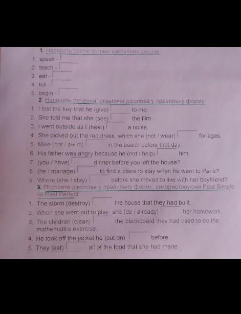 2.1 he had given 3.had heard 4.had not worn. 5.had not swum 6.he had not helped 7. Had you had. 8. Had he managed to . 9.Where had she stayed before...?