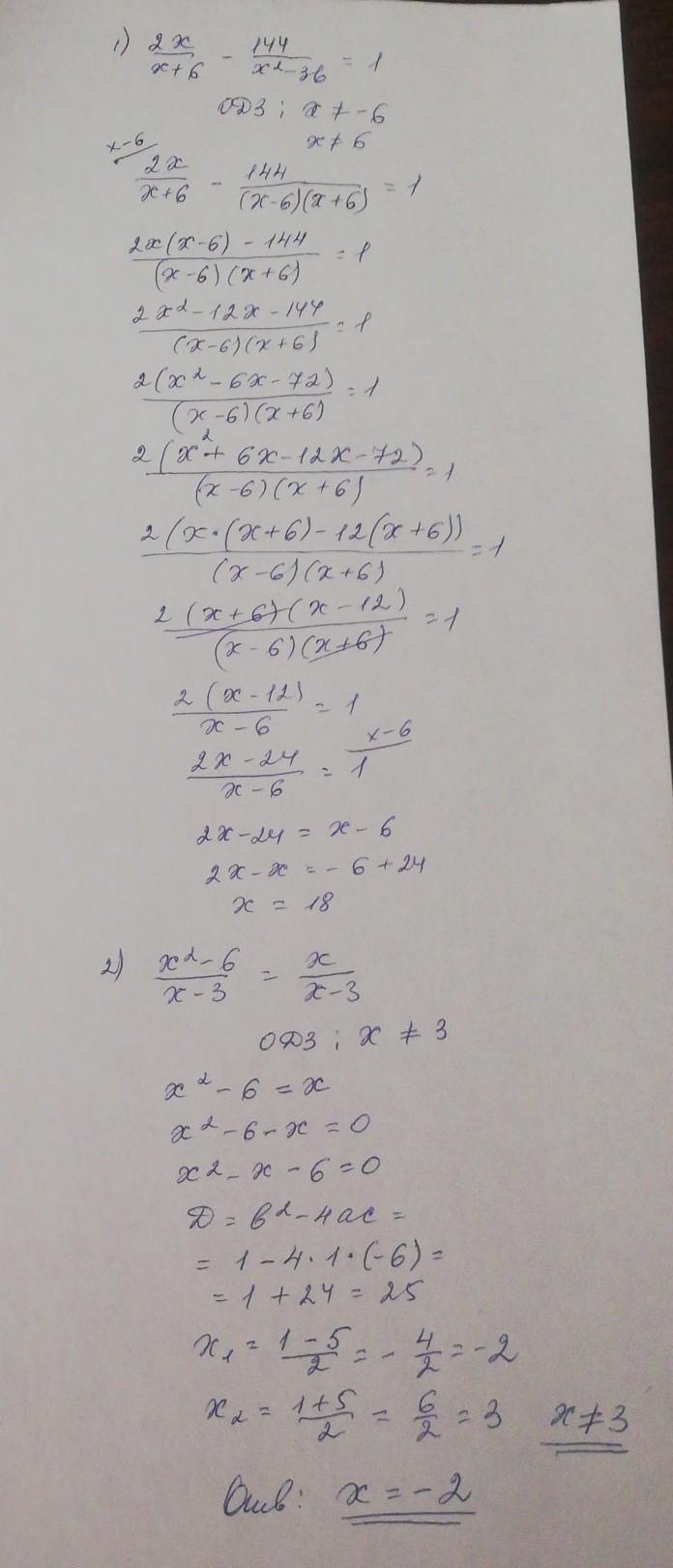 (2х * (х - 6) - 144)/(х² - 36) = 1,