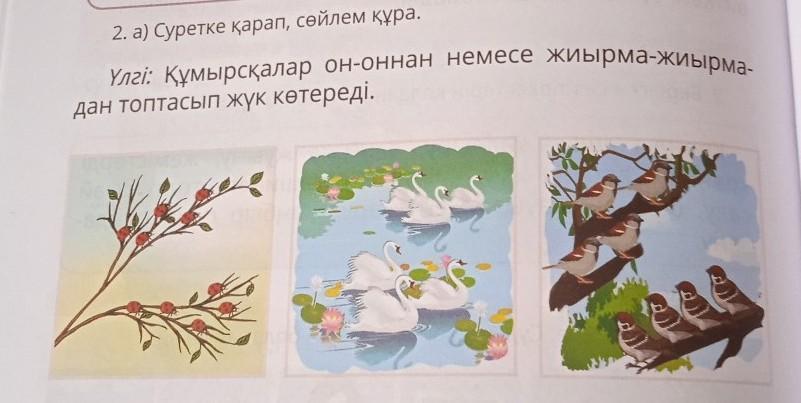 2. а) Суретке қарап, сөйлем құра. Үлгі: Құмырсқалар он-оннан немесе жиырма-жиырма- дан топтасып жүк көтереді. ага