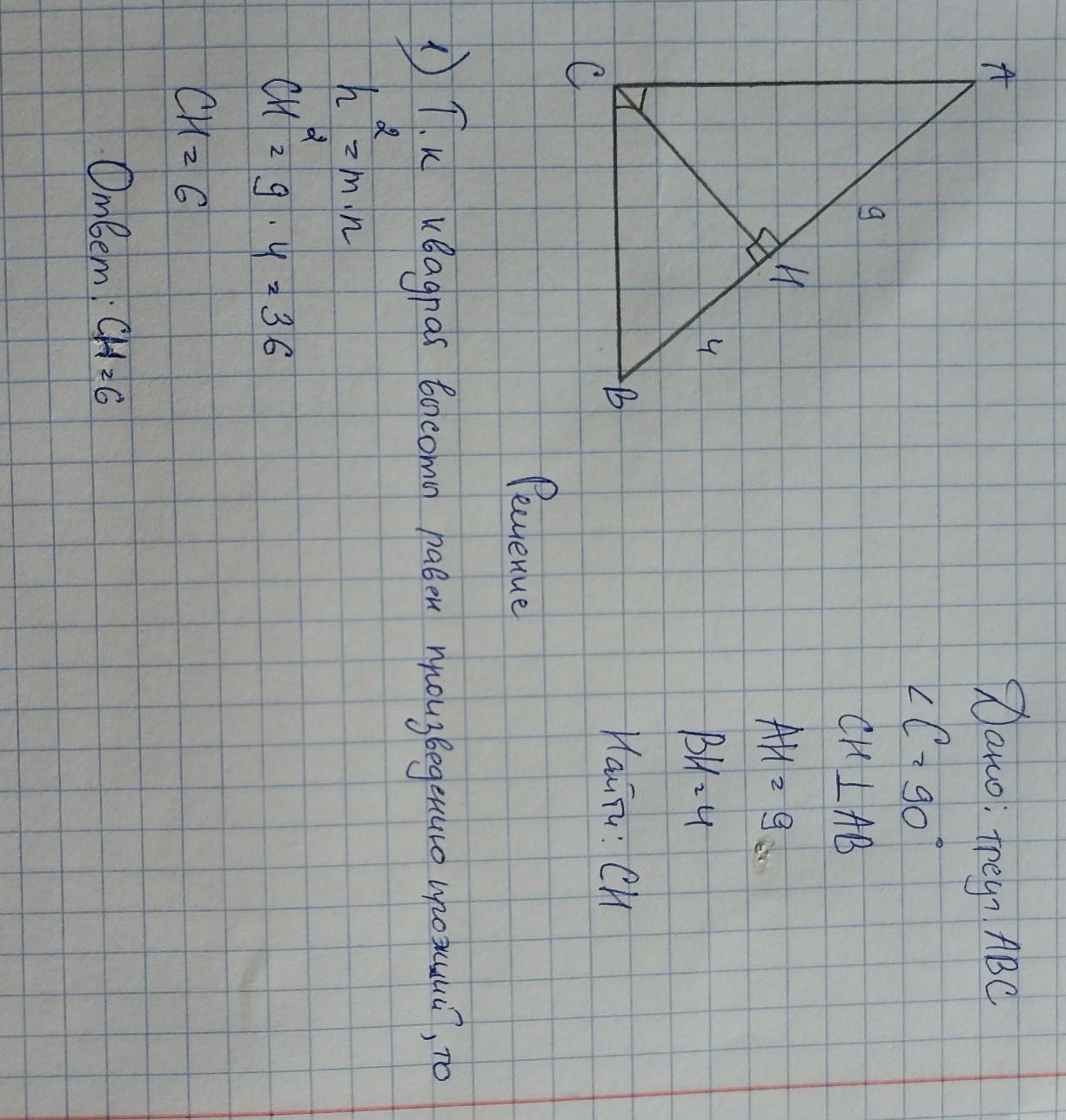 треугольник ABC угол c=90. Ch пропор. AB AH=9 BH=4