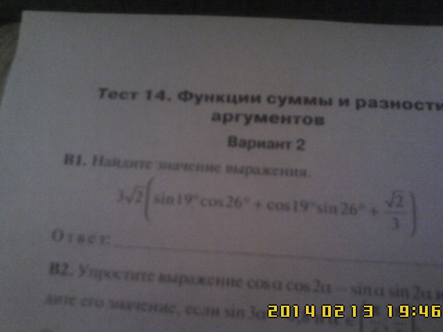 Помогите,пожалуйста:(( Найдите значение выражения 3 корней из 2(sin19cos26+cos19sin26+корень из 2 делить на 3)