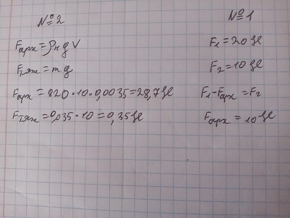 №1. Чему равна действующая на кирпич архимедова сила, если вес кирпича в воздухе