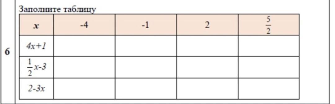 Чтобы заполнить таблицу, нужно в выражение, содержащее х подставить его значение.