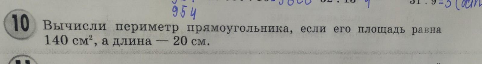 140 : 20 = 7 (см) − ширина прямоугольника; 2) 2 * (20 + 7) = 2 * 27 = 54 (см) − периметр прямоугольника. Ответ: 54 см.