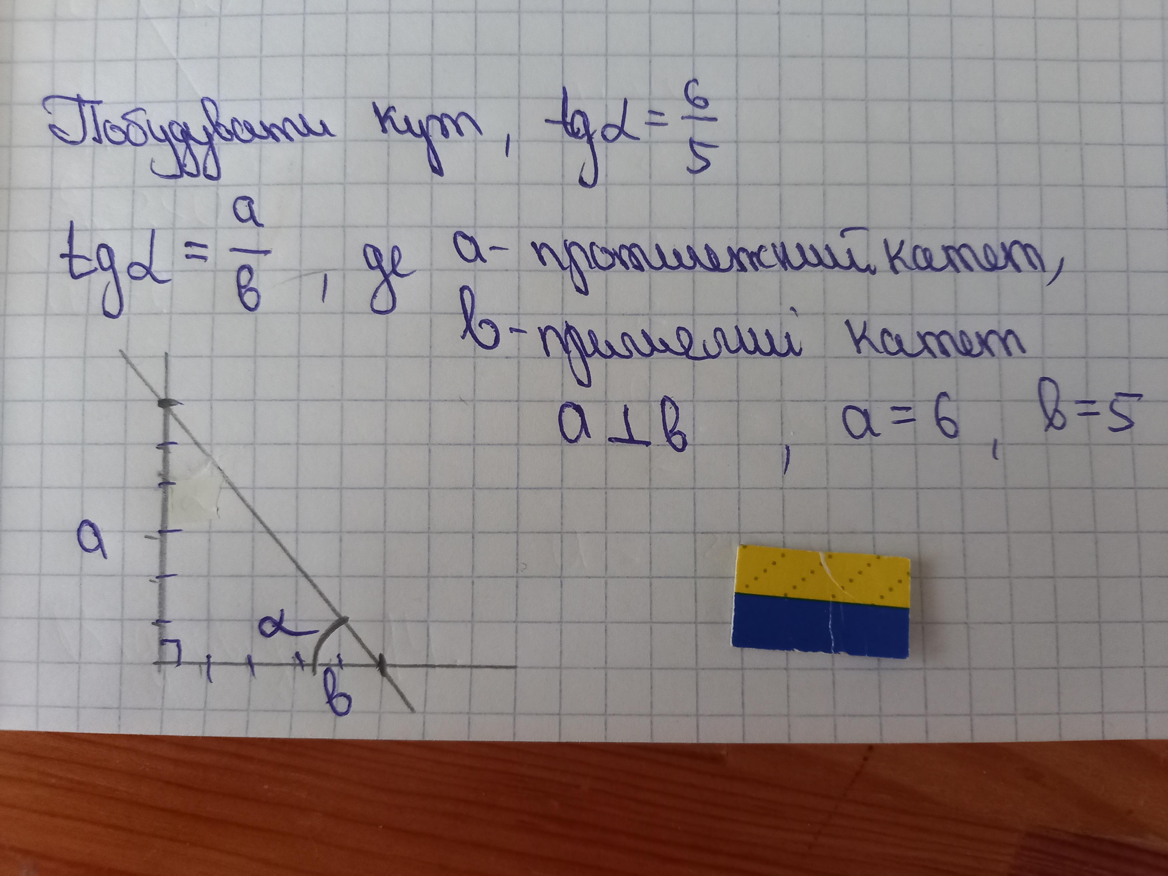 Побудуй кут а)тангенс якого дорівнює 6/5 пожалуйста