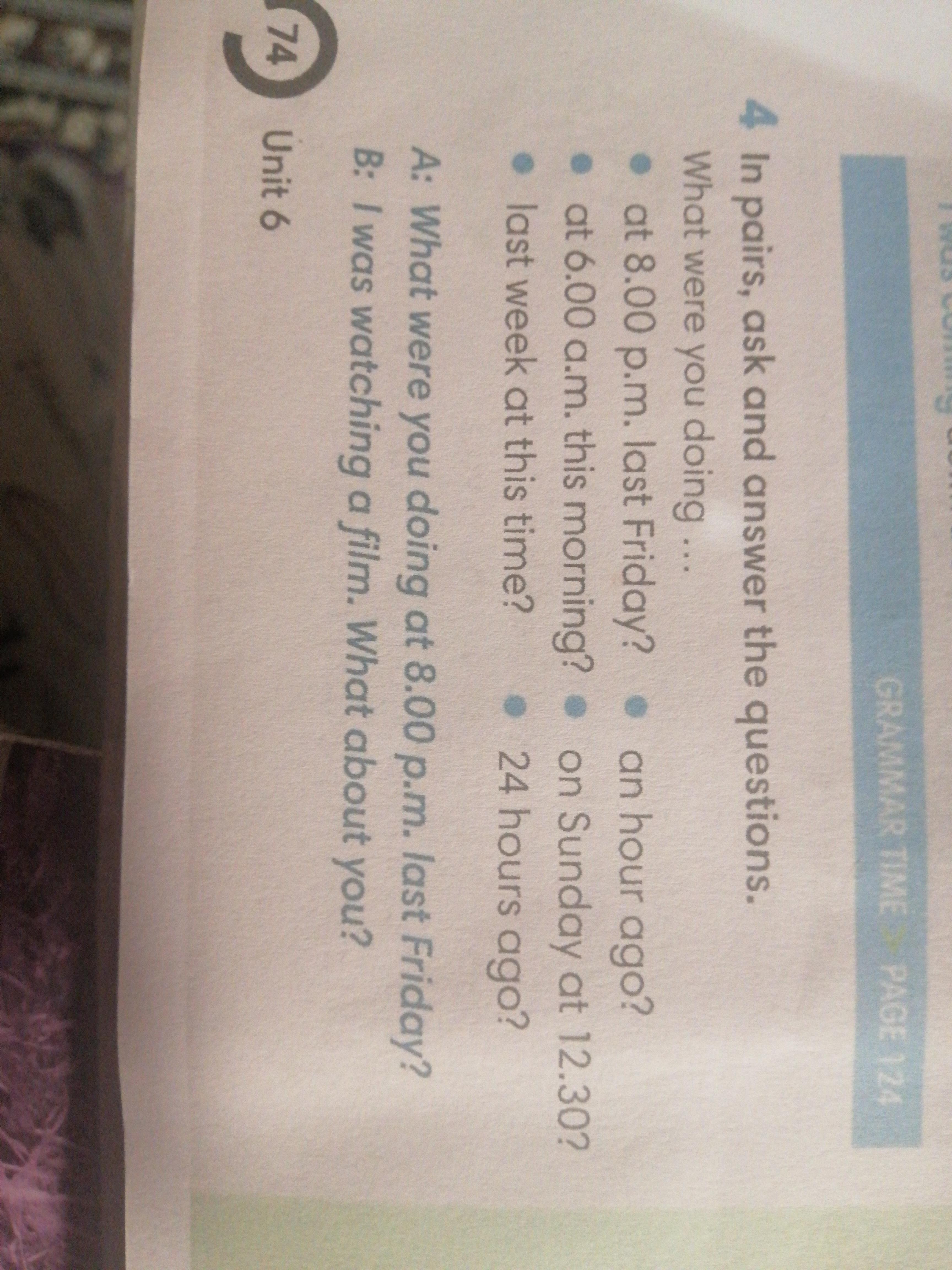 1. A: Что ты делал в прошлую пятницу в 8 часов вечера?