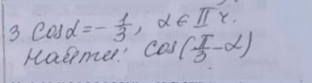 cos(П/3-a)=cosП/3cosa+sinП/3sina=(1/2)(-1/3)+(√3/2)sina=