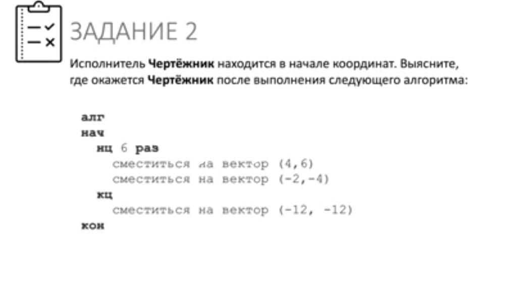 Чертёжник после выполнения алгоритма окажется в начале координат