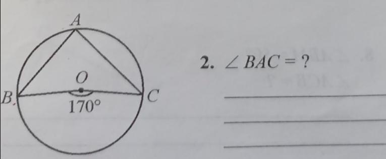 2) Угол ВАС=1/2ВС(дуга)=1/2*170=85