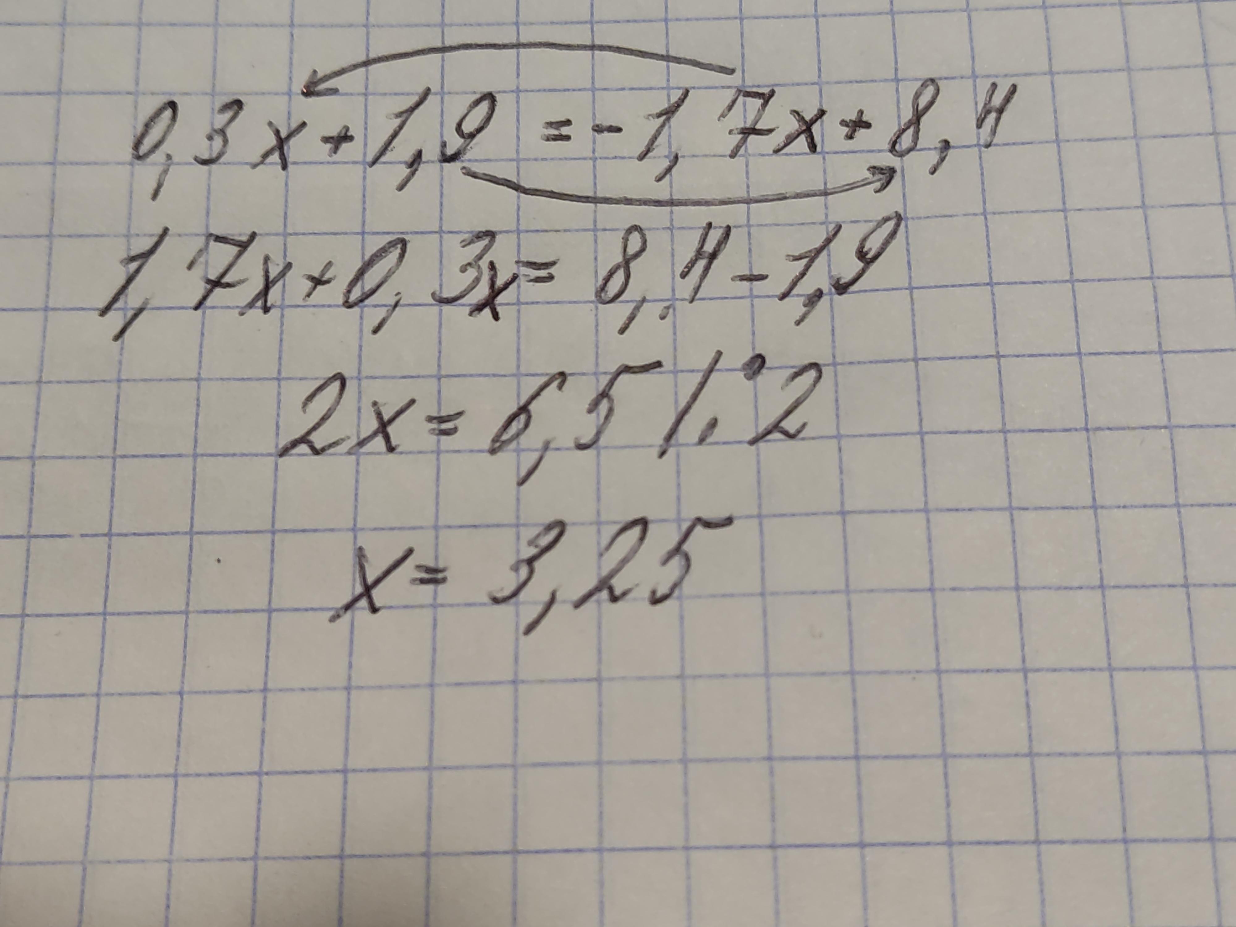 0,3х + 1,9 = -1,7х + 8,4
