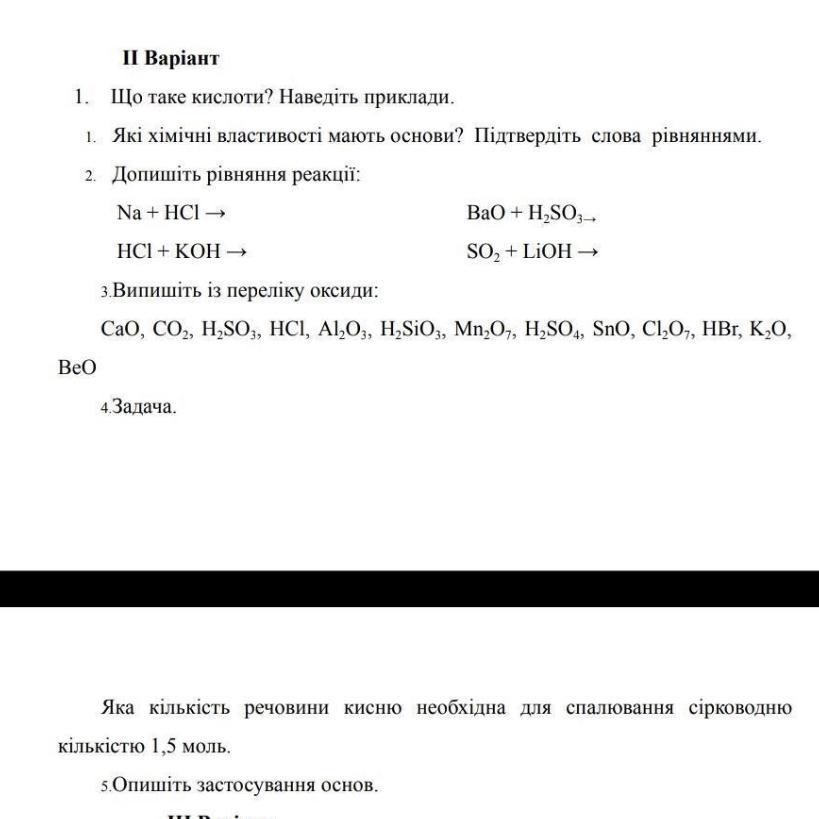 Кислота - це сполука, що складається с катіона металічного елемента та кислотного залишку. (Приклади: H2SO3, H2SO4, H2CO3, HNO3, HCl, HBr)