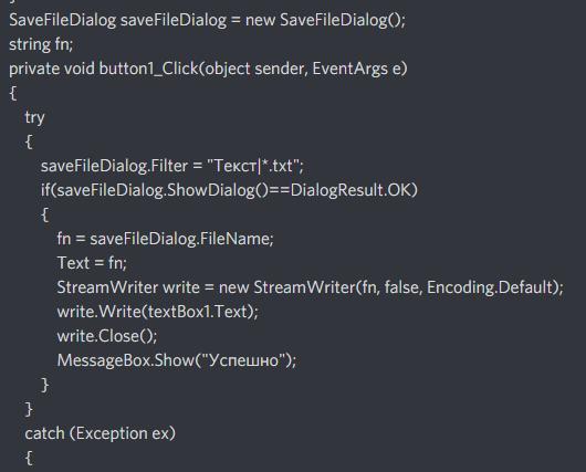 using (var writer = new StreamWriter(saveDialog.FileName))