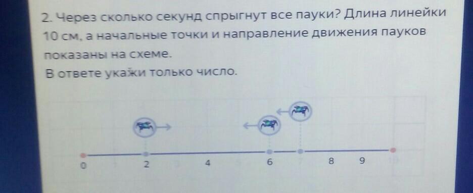 Объяснение:Паук, который стоит на точке 2 доберётся до точки 10 через 8 секунд. У этого паука самое большое время, так как уипаука на точке 7 это бы заняло 7 секунд.