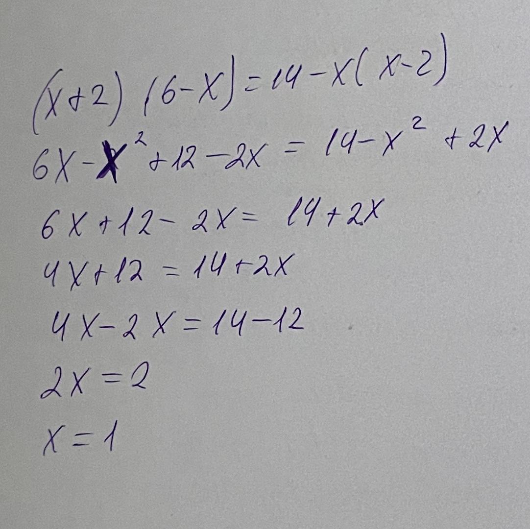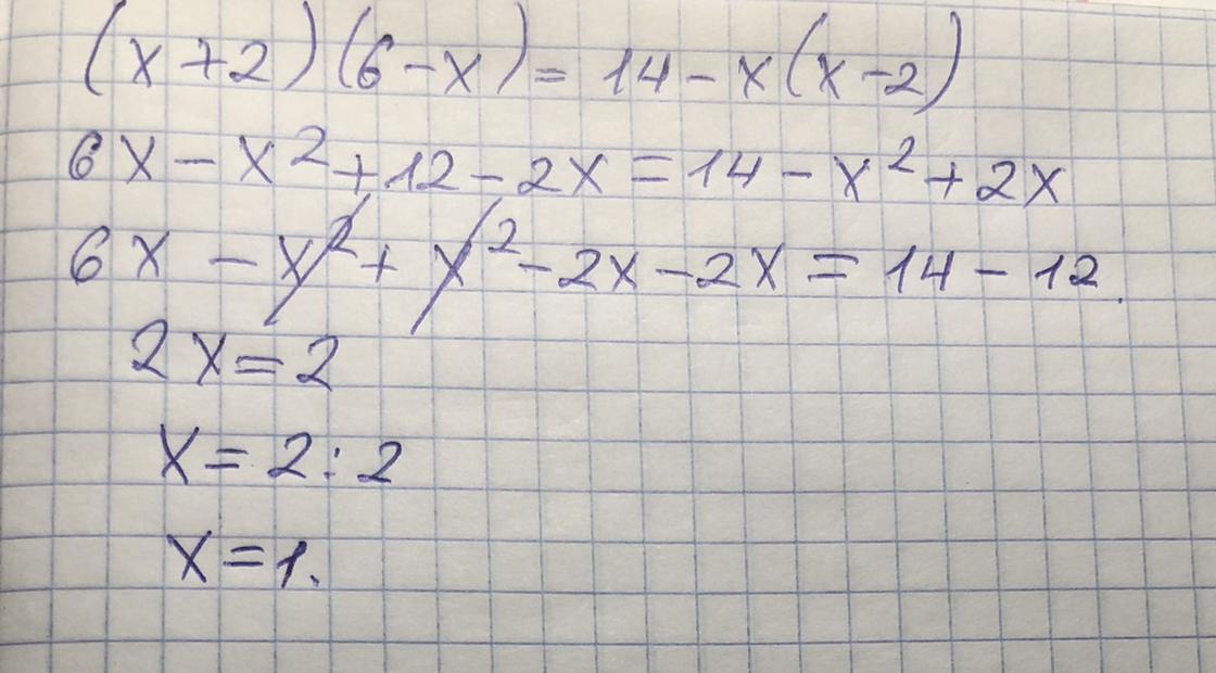 (х+2)(6-х)=14-х(х-2)